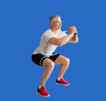 The squat exercise mimics the same movement as getting up and down from a chair. Practicing the squat takes up very little room. It can be done at home or outdoors.