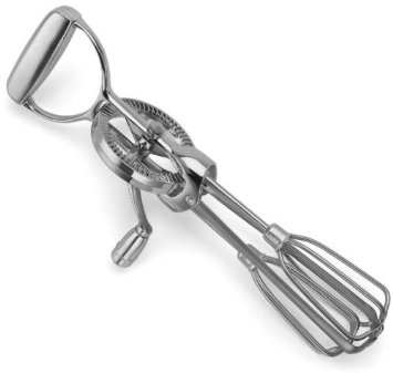 A manually powered kitchen tool that spiralizes vegetables. It comes with three blades. It’s easy to clean, and to store. Inexpensive. No batteries required, completely manual. Fun to use. Fast preparation.