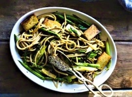 Preheat oven to 350°F. In a large bowl, beat together nutritional yeast, five-spice powder and 1 tablespoon plus 1-1/2 teaspoons of the cornstarch, until blended. Add tofu and toss until evenly coated. Spread tofu on a baking sheet, lined with baking sheet paper in a single layer. Bake tofu until crisp.